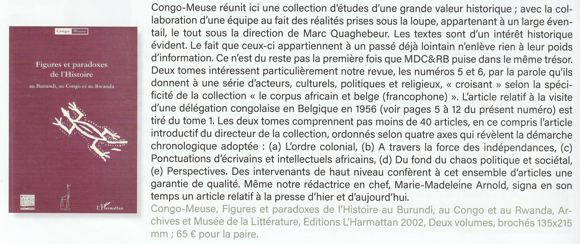 Figures et paradoxes de l’Histoire au Burundi, au Congo et au Rwanda, Archives et Musée de la Littérature