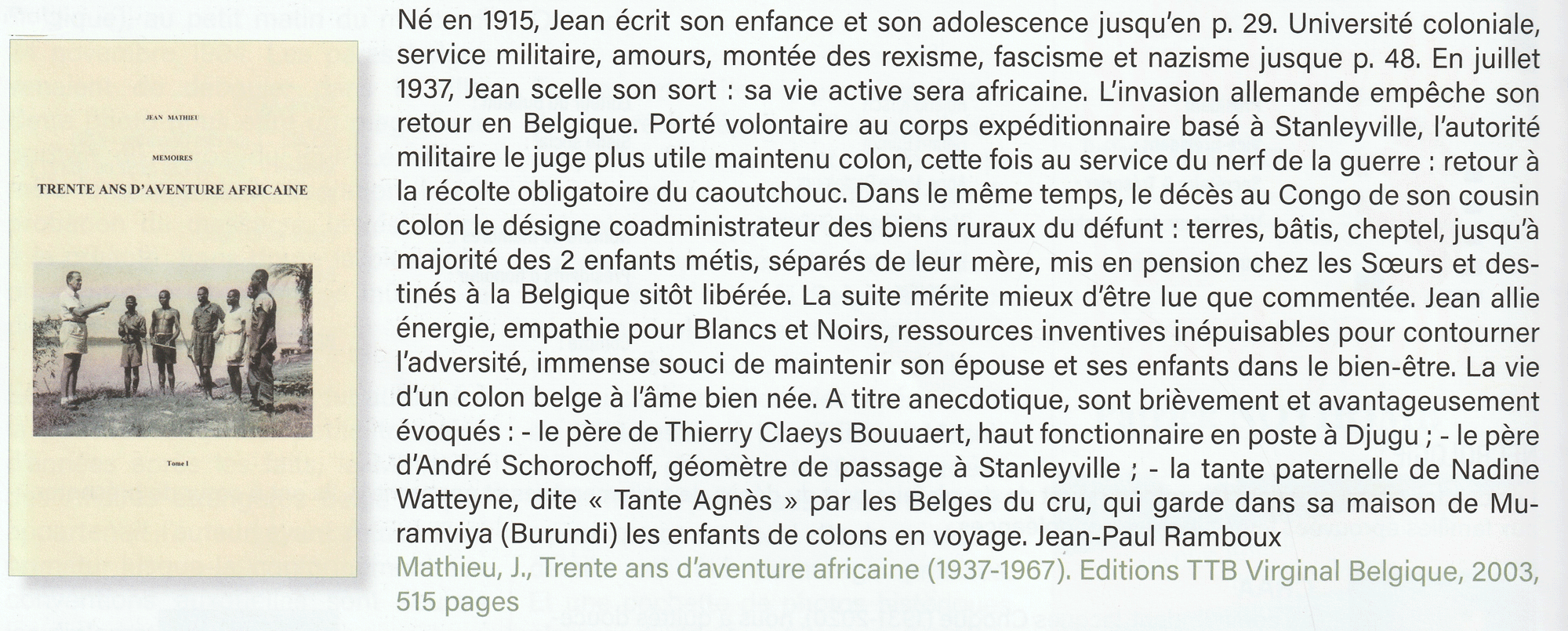 Trente ans d’aventure africaine, Jean Mathieu