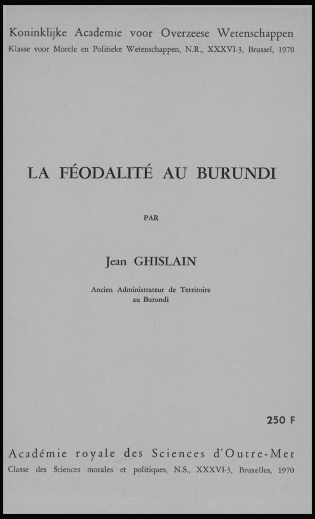 La féodalité au Burundi, par Jean Ghislain, ancien Administrateur de Territoire au Burundi.