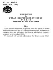 Bulletin Officiel de l’Etat Indépendant du Congo, Rapport de la Commission d’enquête au Roi Souverain – 30 octobre 1905- De Cuvelier, Droogmans, Liebrechts
